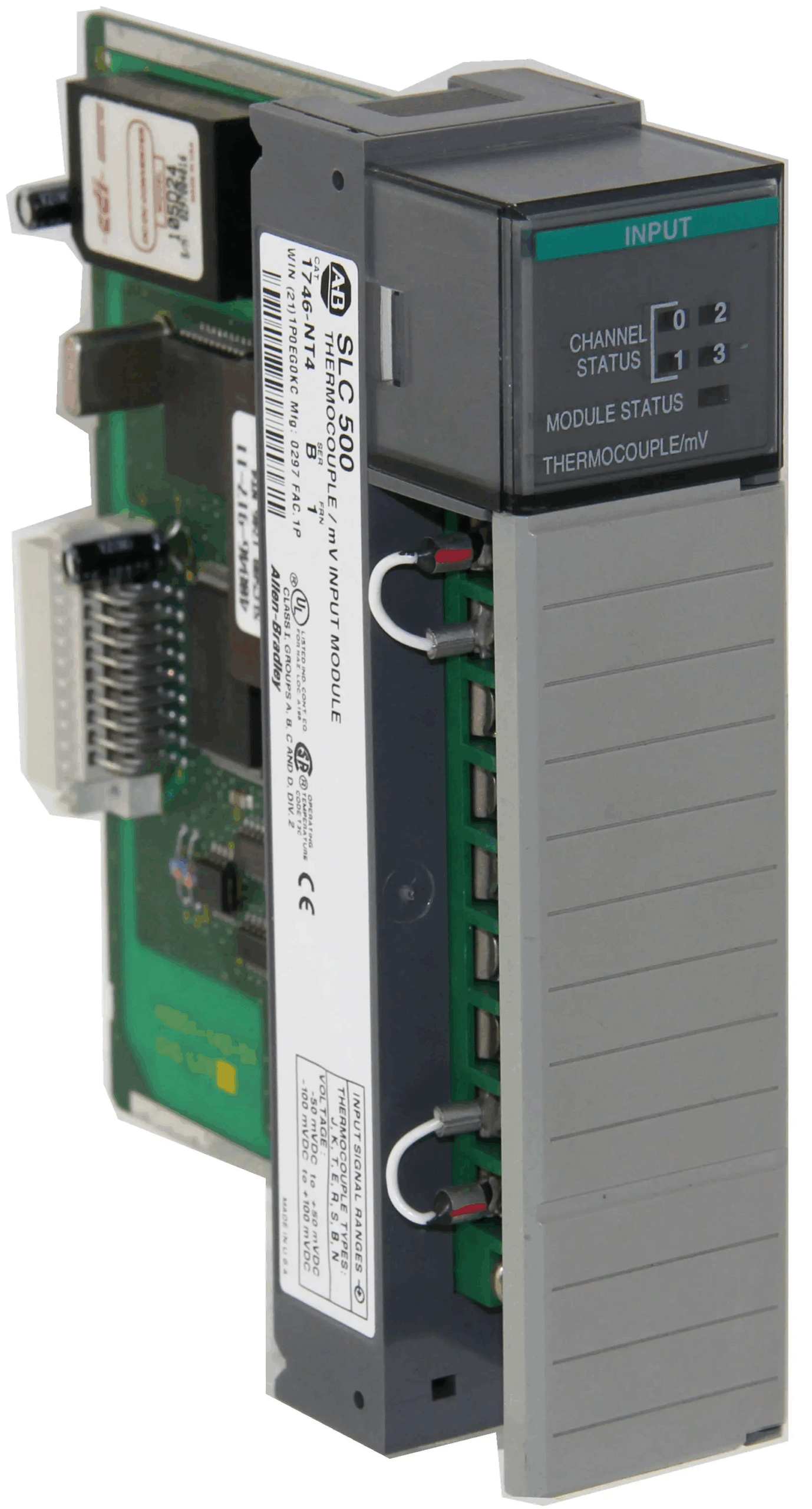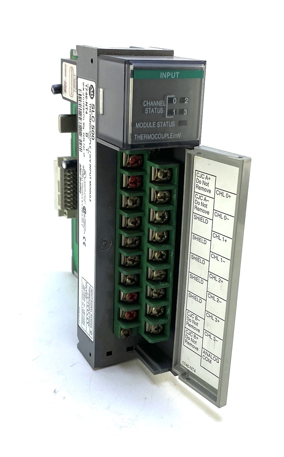 El Allen-Bradley 1746-NT4 es un módulo de entrada analógica para termopares/mV SLC 500. Este módulo cuenta con cuatro (4) canales compatibles con sensores de termopar como J, K, T, E, S, R, B y N. También admite entradas de mV de +/- 50 mV y +/- 100 mV. Es compatible con los modelos SLC 500 fijos y modulares.