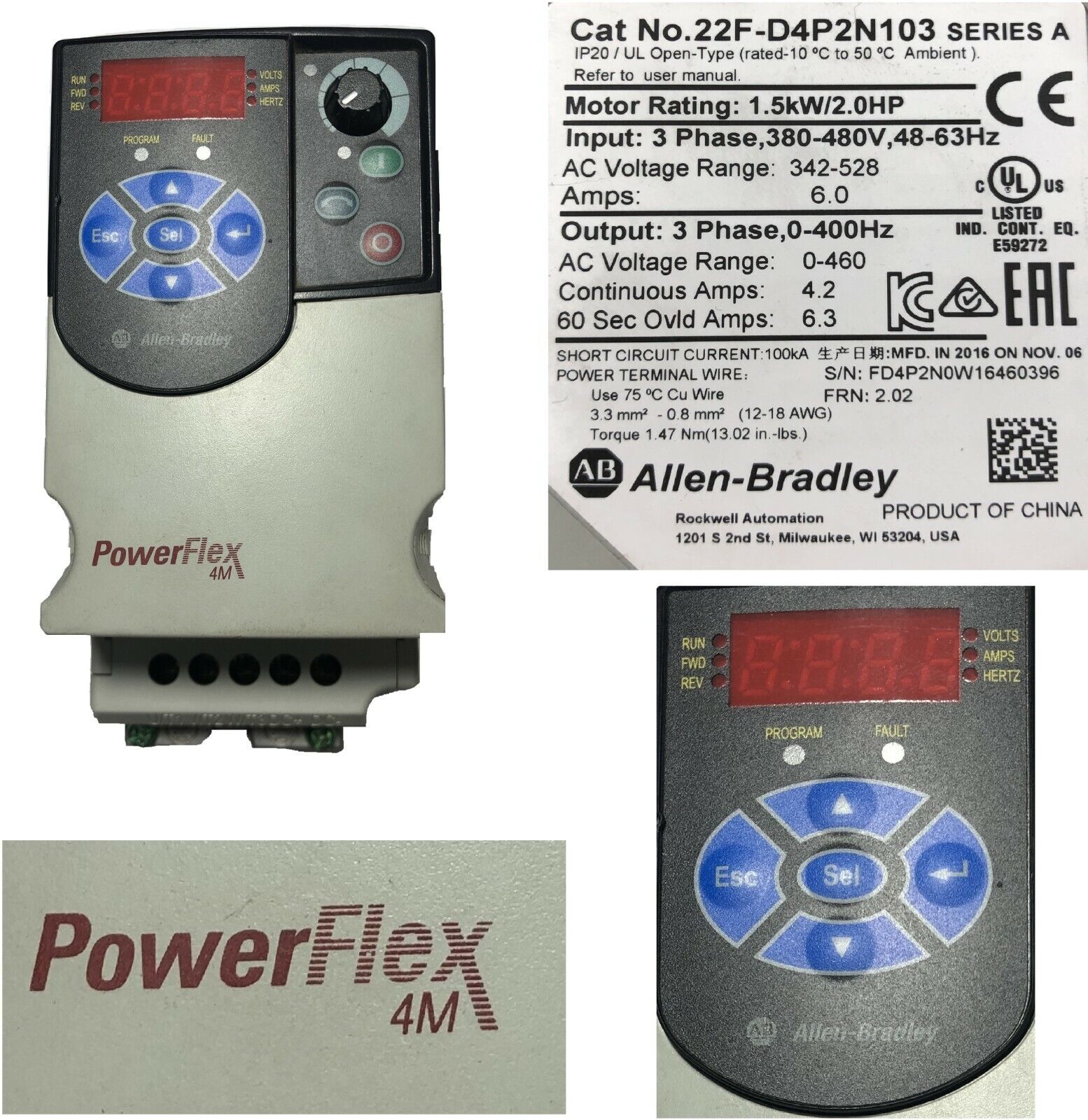 22F-D4P2N103, ALLEN BRADLEY, Variador de frecuencia, CA, 1,5 kW (2 HP), entrada de CA de 480 V, trifásico, 50-60 Hz, salida de 4,2 A, IP20, tipo UL-NEMA abierto