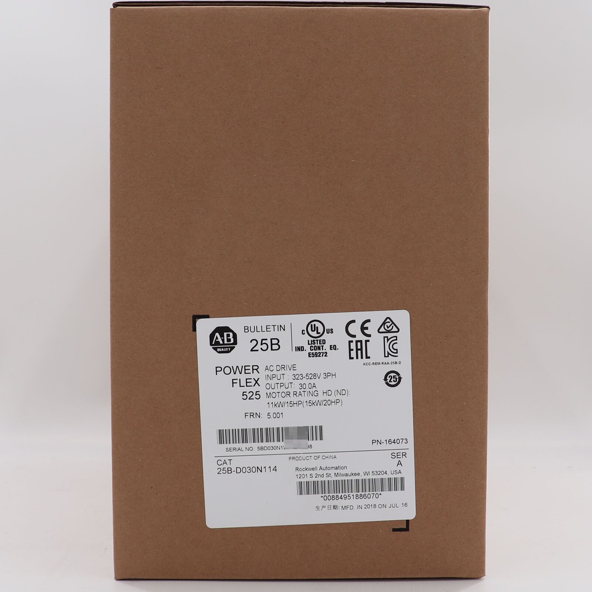 El Allen-Bradley 25B-D030N114 es un variador de frecuencia (VFD) PowerFlex 525. Este VFD se alimenta con un rango de voltaje de entrada de 323-528 V CA, trifásico, con una salida de motor aplicable de 30,0 A y una potencia de 15,0 kW (20,0 HP) para operación en condiciones normales y exigentes.