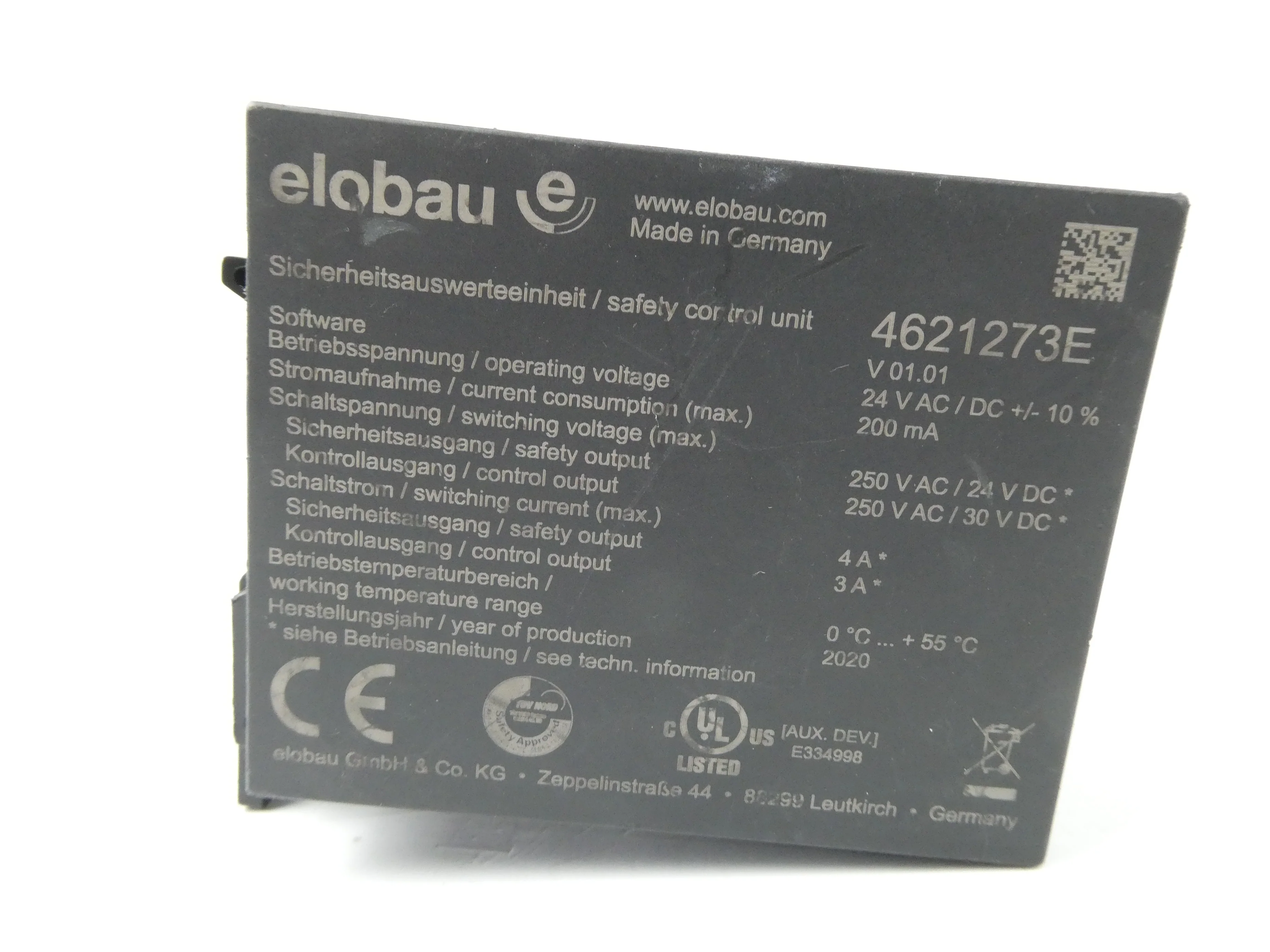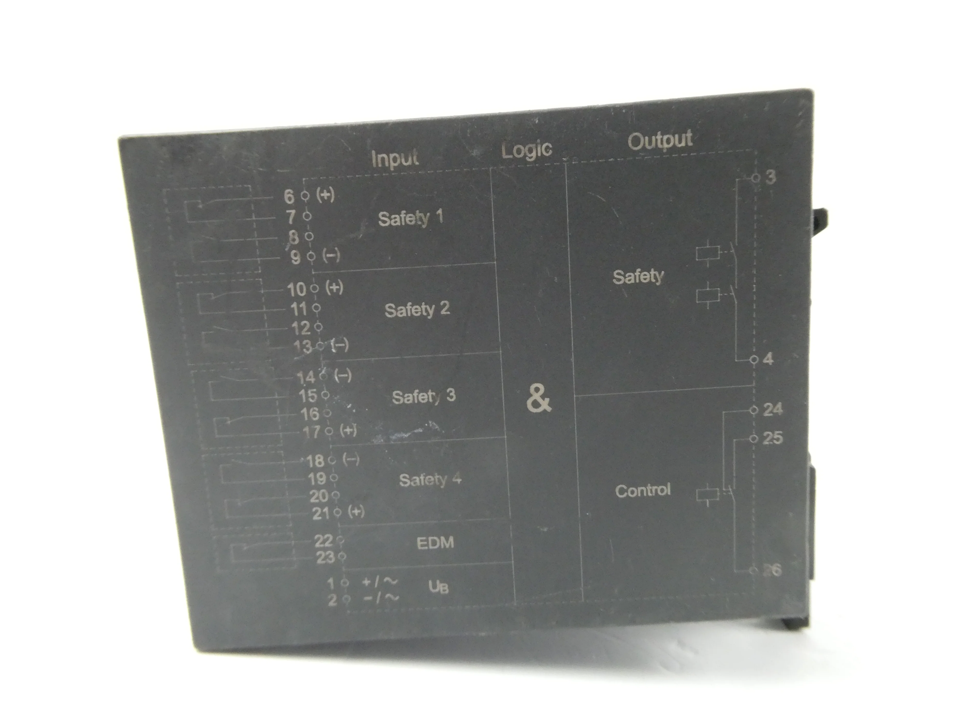 Descripción: Relé de seguridad, fuente de alimentación, 4 sensores normalmente abiertos/normalmente cerrados, 1 salida de seguridad del relé, 1 salida de control conmutada, LED indicadores de estado y error, 24 V CC/CA