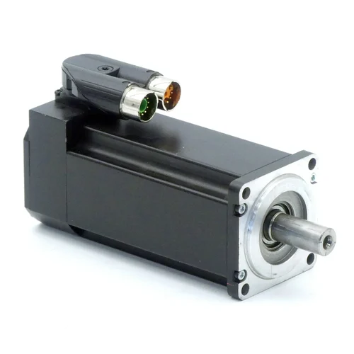 DESCRIPCIÓN: Motor síncrono, número de pares de polos: 4 pares, velocidad nominal: 3000 rpm, par de arranque: 1350 Nm, motor con freno de retención, eje liso con conector angular (giratorio), diámetro de centrado: 50 mm, ajuste H7 con refrigeración propia, tipo de construcción A, protección IP54, sin junta de aceite, 80 V CC, par de retención del freno: 2,20 Nm, B1 2.2 ind., 16 vueltas multivuelta