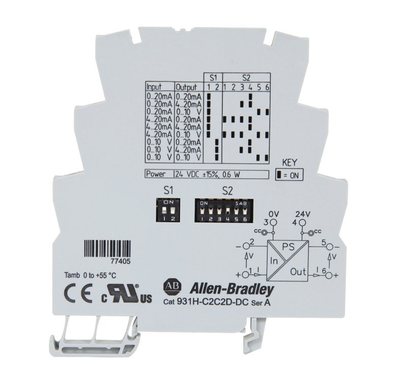 931N-A221, Allen Bradley, 931N, Nano, CONVERTIDOR DE SEÑAL ANALÓGICA, DIP Switch 24V DC