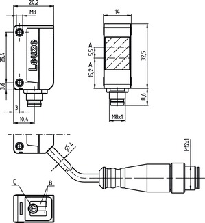 | Operating range limit, gray 18% | 0.003 … 0.19 m |