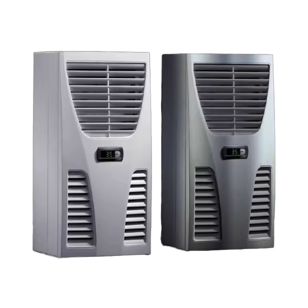 Product description: Energy-efficient Blue e wall-mounted cooling units in the output categories 300 W to 4000 W and with integral electrical condensate evaporator (from 1000 W).