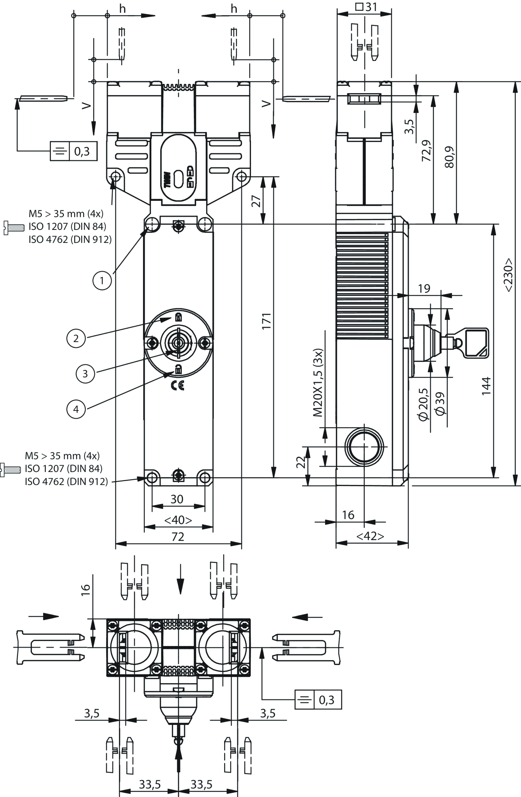Si se requiere mayor holgura con la puerta cerrada, se dispone de un actuador con recorrido de aproximación. Con este actuador, la puerta puede moverse ligeramente en la dirección de accionamiento al cerrarse. Esto es importante, por ejemplo, si las puertas de seguridad tienen un tope de goma. Al usar un actuador con recorrido de aproximación, se puede reducir la presión continua de la goma comprimida. De esta manera, se reduce la carga sobre el cabezal del interruptor y el mecanismo de la puerta.